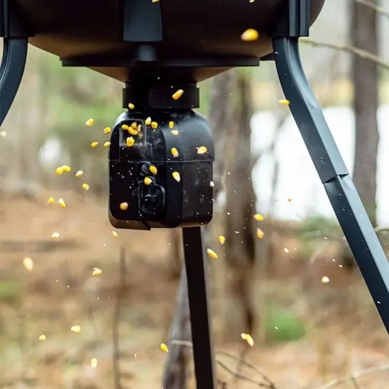 Jeho technologie cílené distribuce umožňuje vyhazovat návnadu přesně tam, kde ji chcete mít — ideální pro úzké lesní průchody, lovecké cesty nebo rybníky.