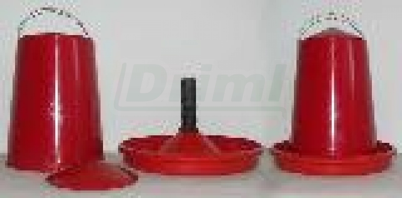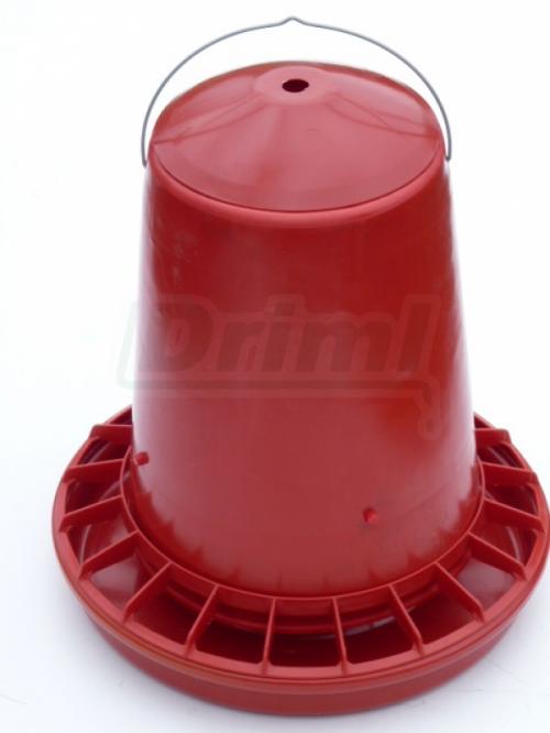 Tubusové krmítko s přepážkami na 1 kg krmiva pro kuřata, křepelky, atd červeno bílé