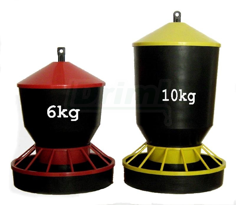- Závěsný plastový zásobník na 6kg krmiva.