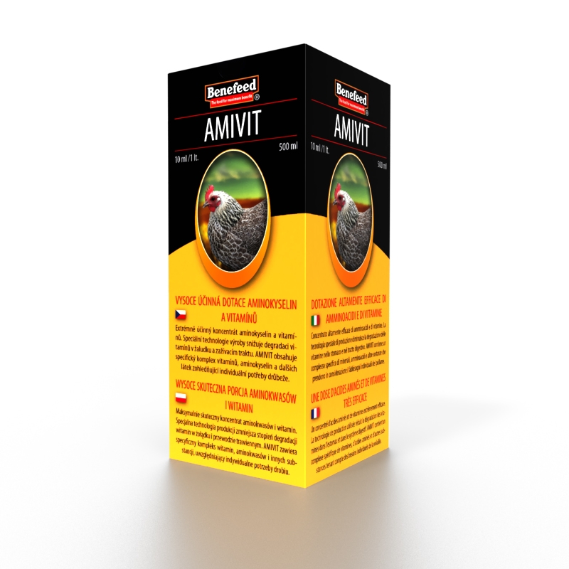 AMIVIT obsahuje specifický komplex vitamínů, aminokyselin a dalších látek zohledňující individuální potřeby kategorie zvířat, pro kterou je určen. Všechny aktivní látky jsou ve formě, která zajistí maximální účinnost každé z nich tak, aby došlo k vyrovnání hladiny jednotlivých aminokyselin a vitamínů v organismu. Optimální hladina aminokyselin a vitamínů v organismu je mimo jiné zcela nezbytným předpokladem pro vysokou obranyschopnost a odolnost organismu např. proti infekčním a virovým chorobám. U užitkových zvířat jsou také eliminovány negativní důsledky poklesu užitkovosti z důvodu snížené hladiny vitamínů v organismu.