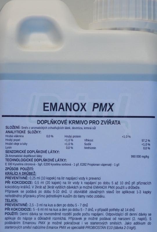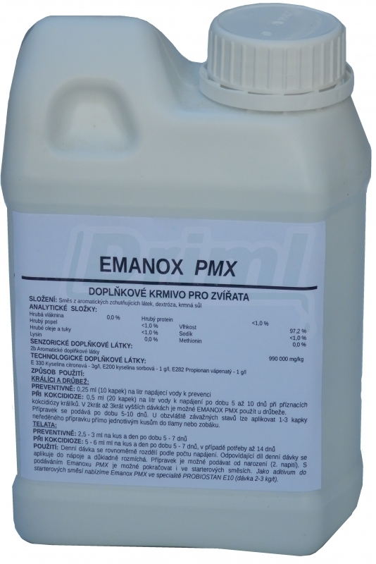 zejména však králíků, drůbeže a malých přežvýkavců – telat, jehňat a kůzlat. - Tekutá forma EMANOXU označená PMX je vhodná hlavně k léčbě kokcidiózy