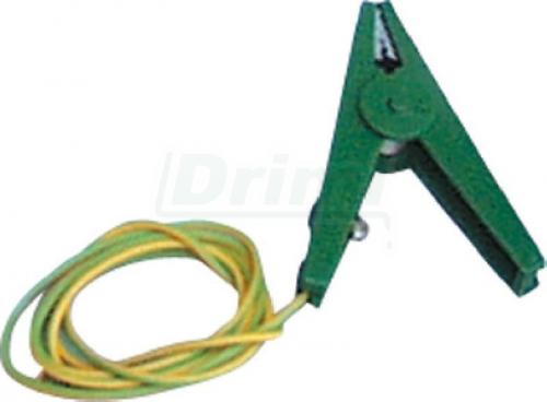 Kabel s mosazným očkem a zelenou přípojnou klemou je určen pro napojení přenosných zdrojů k zemnícímu kolíku.