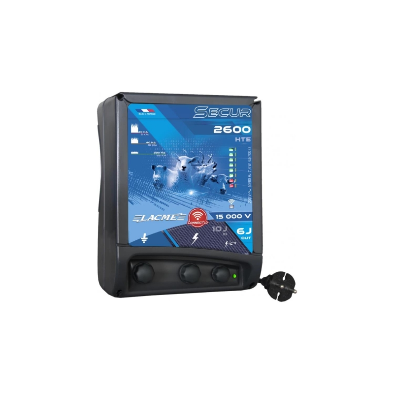 Síťový zdroj LACME SECUR 2600 HTE CONNECTLD je vhodný pro všechna zvířata pro středně dlouhé ohrady.