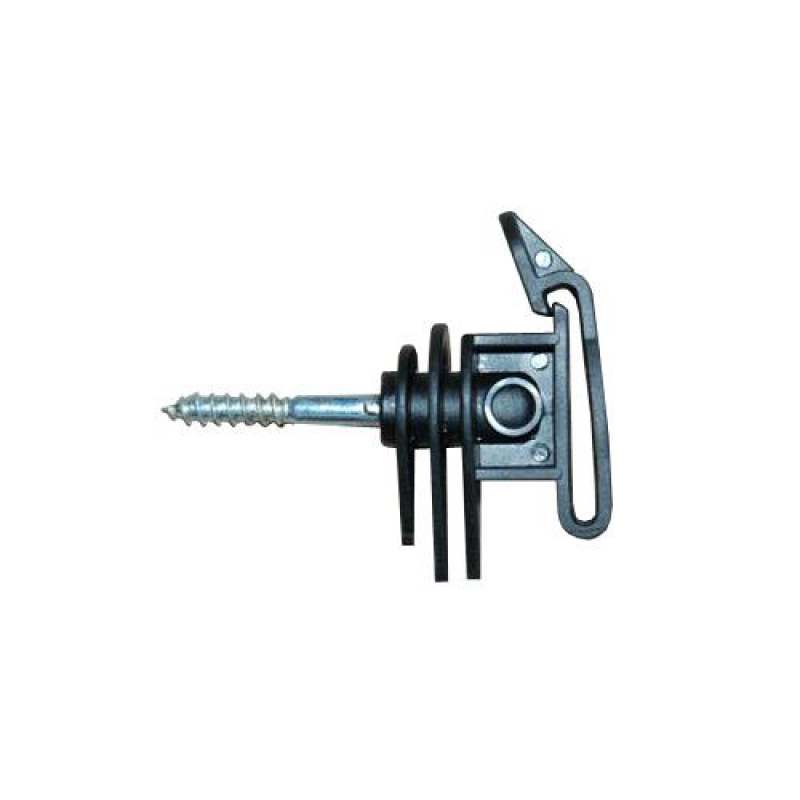 Univerzální izolátor pro elektrický ohradník k pevné fixaci pomocí vrutu. Tento izolátor lze použít pro pásky do 40 mm, páska je fixována klipem, páska se může v izolátoru volně pohybovat.