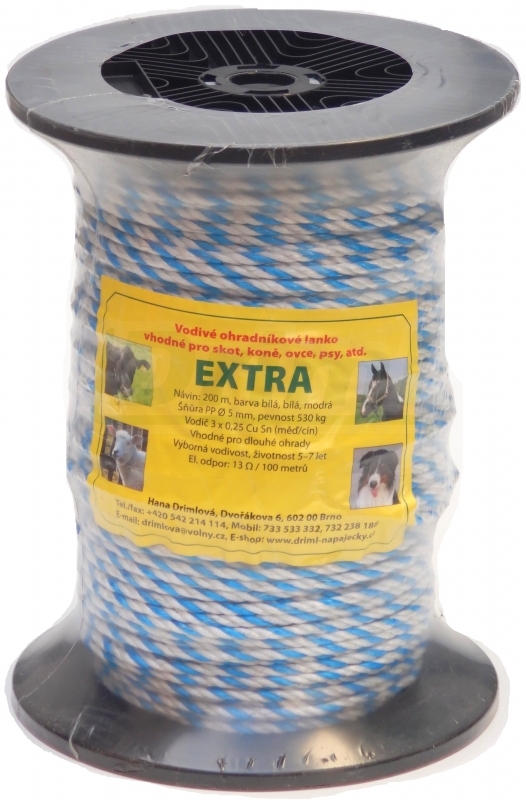 Vložte dotaz nebo napište zkušenost se zbožím EXTRA lano PP, návin 200m, Ø 5mm, bílo-modré