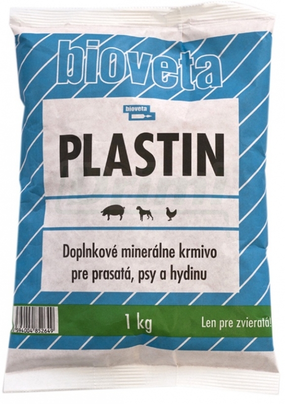 - Plastin 1 kg, je doplňkové minerální krmivo pro drůbež, prasata a psy. Je to vhodný zdroj vápníku, sodíku, železa, jodu, zinku adalších prvků Použití především při nevyvážených krmných dávkách.Je to český výrobek firmy Bioveta a.s. působící na trhu již desítky let. Velice nízká cena oproti zahraničním preparátům! Šetříte životní prostředí- obal je papírový- recyklovatelný. Složení: Uhličitan vápenatý - 83,03 %, dihydrogen a hydrogenfosforečnan vápenatý monohydrát (dikalciumfosfát) - 7,50 %, uhličitan hořečnatovápenatý - 6,90 %, síran železnatý monohydrát (FeSO4.H2O) - 1,56 %, oxid železitý (Fe2O3) - 0,50 %, oxid zinečnatý (ZnO) - 0,18 %, chelát zinku a aminokyselin n-hydrát (Zn (x)1-3.n H2O) - 0,11 %, chelát železa a aminokyselin n-hydrát (Fe(x).n H2O) - 0,09 %, vanilkové aroma - 0,06 %, oxid měďnatý (CuO) - 0,04 %, chelát mědi a aminokyselin n-hydrát (Cu(x).n H2O) - 0,02 %, oxid manganatý (MnO) - 0,01 %, chelát manganu a aminokyselin n-hydrát (Mn (x)1-3.n H2O) - 0,01 %, jodid draselný (KI) - 0,01 %.