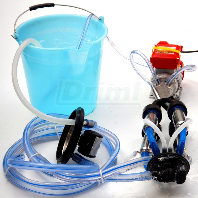 Mobilní - přenosný stroj pro poloautomatický proplach dojicích strojů DRIML, komplet s kbelíkem 17 l.