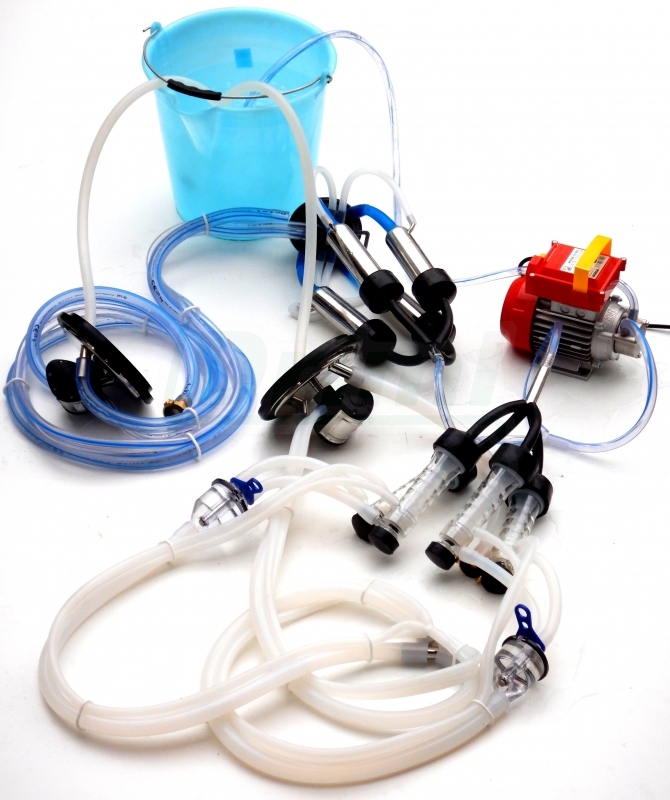 - Mobilní - přenosný stroj pro poloautomatický proplach pro 2 kravské soupravy nebo pro 4 kozí soupravy nebo pro kombinovené dojení 1x kráva + 2x koza