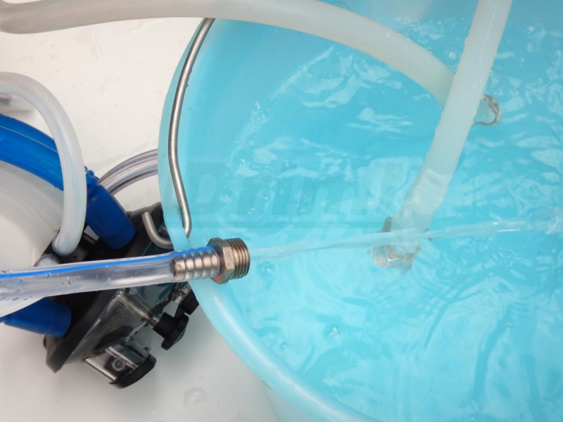 - Pracovní výkon čerpadla při proplachu je cca poloviční, protože se přes dojicí soupravu stále přisává vzduch