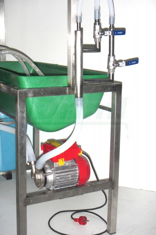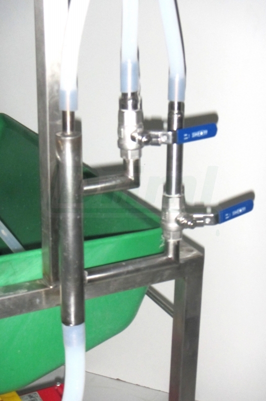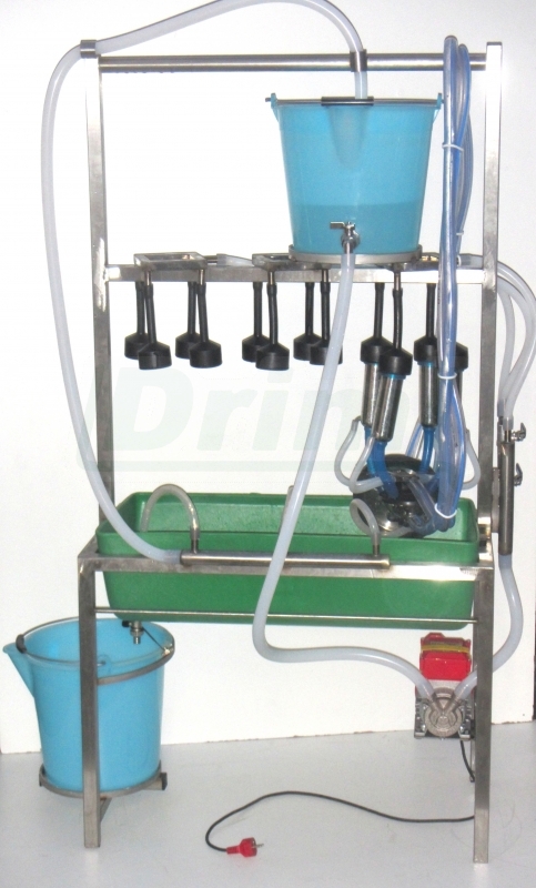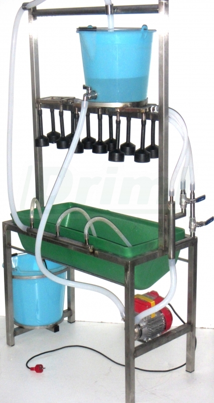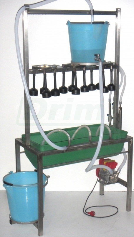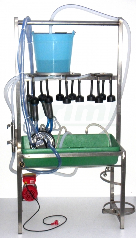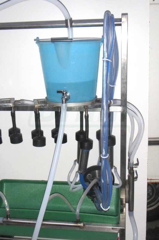 - Stabilní nerezová stolice pro proplach mléčných cest dojení obsahuje: