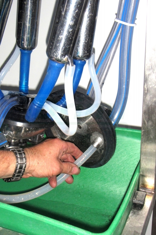 - Plastová vana s výpustí pro vnější očistu dojicí soupravy