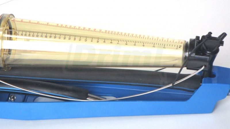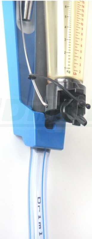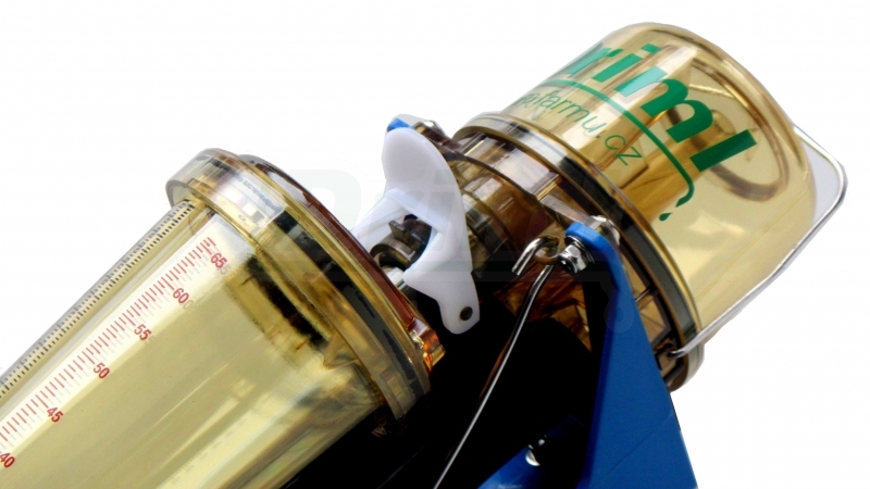 - Měřič mléka ukládá 2% z celkového výnosu do kalibrované nádobky, z čehož pak lze přímo odečíst celkové množství v kilogramech/ litrech / librách.
