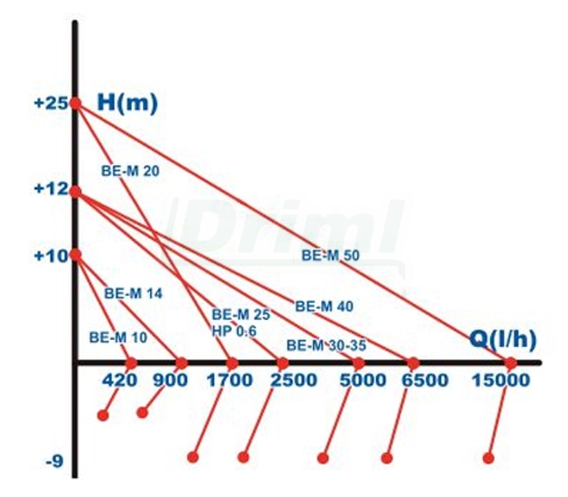 - Maximální průtok: 250 l / min 15.000l - 15 m ³ / hod