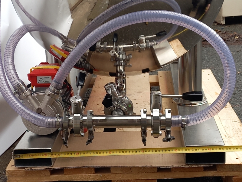 - Vzájemnou kombinací nastavení tří nerezových klapkových ventilů lze tank načerpat, vyčerpat a sanitovat
