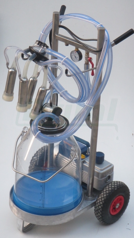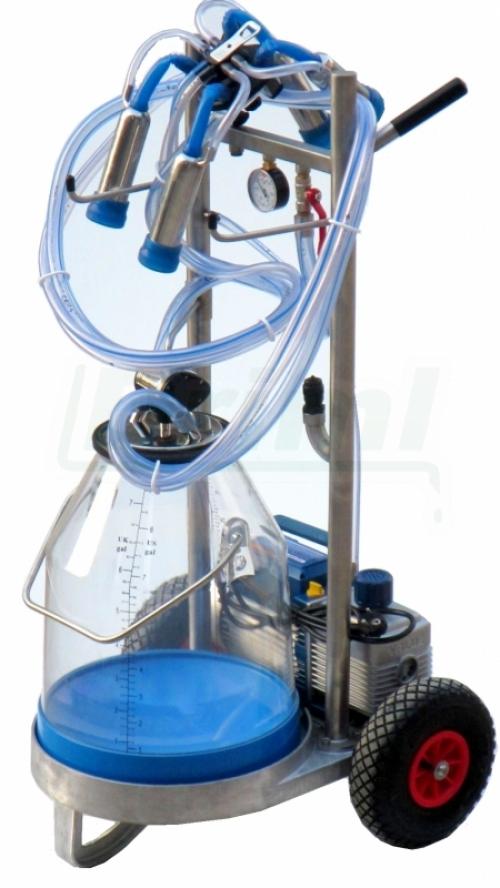 Výkonná vývěva umožňuje dojení 2 - 4 koz nebo ovcí najednou do jedné konve