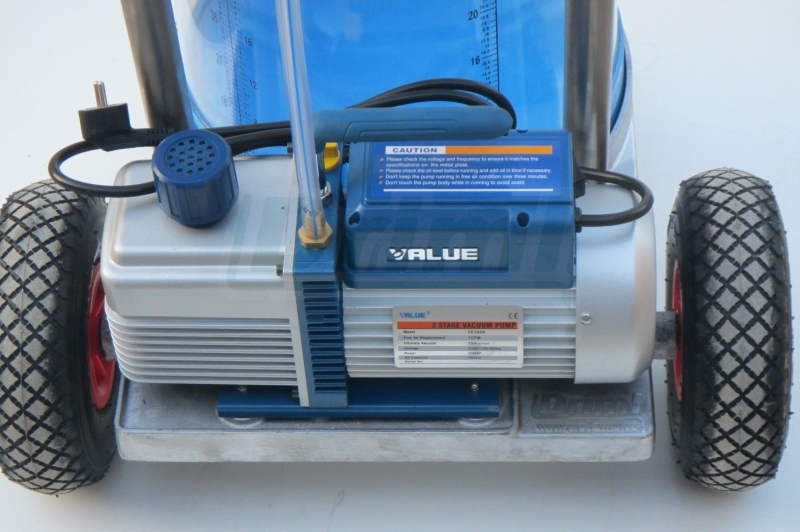 - Podvozek dojačky je uzpůsoben tak, že je možné používat i standardní 25l nerezové konve!