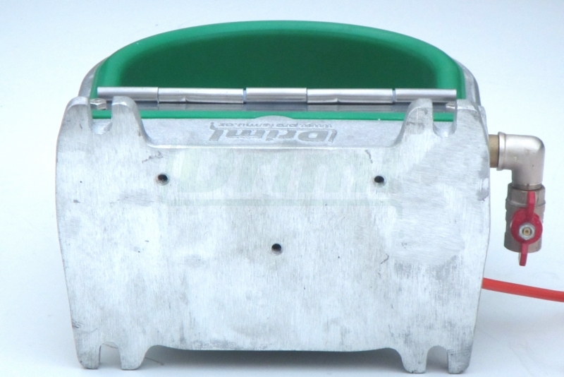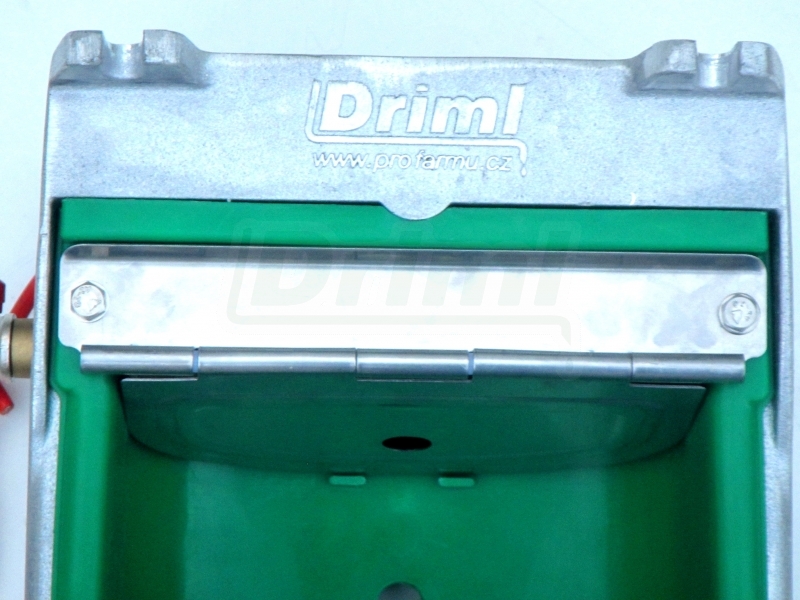Nylonová miska napáječky s nerezovým výklopným krytem je vybavena výpustí s 1/2" zátkou v nejnižším bodě. Napáječku se vyrábí pouze s přívodem zleva, aby bylo možné využít objem napáječky k větší pohotovostní náplni. Uživatel si instalaci předem přizpůsobí s ohledem na tuto skutečnost.