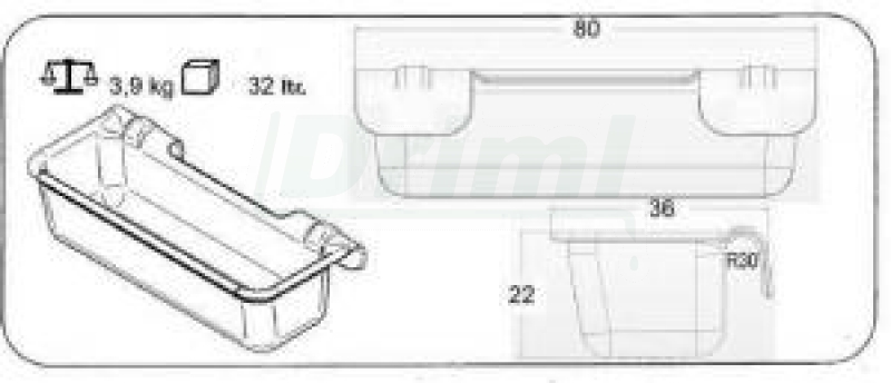 | Rozměry: :š 80cm, v 22cm, h 36cm a hloubka závěsů je pak 8cm. |