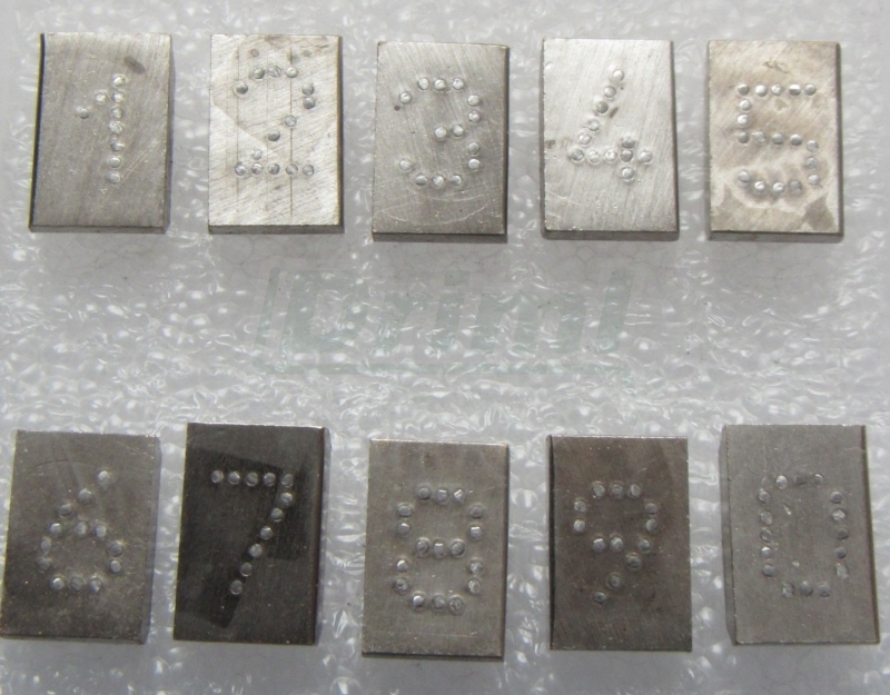 Tetovací číslo 7 mm Číslice 0 - 9 Materiál základny je poniklovaná mosaz Půdorys základny 9 x 14 mm ...