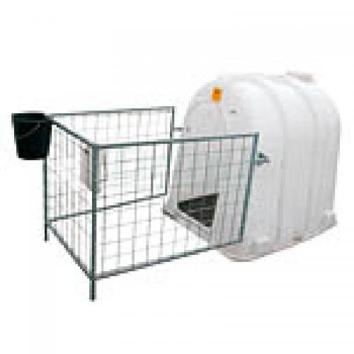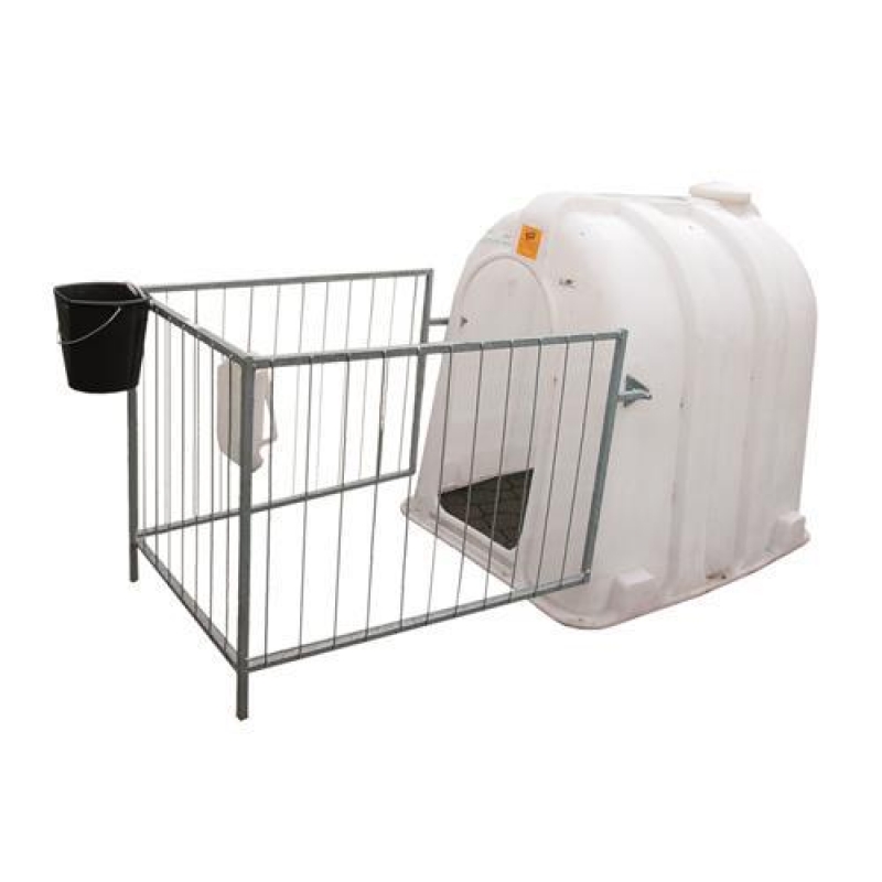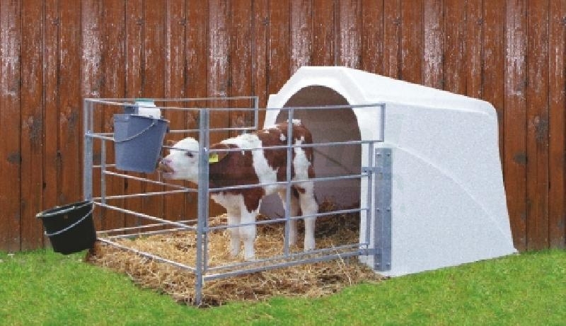 Vnější rozměry základny: délka 150 cm, šířka 112 cm, výška 135 cm Bouda pro telata je z bílého polyetylenu a má zastřešený ...