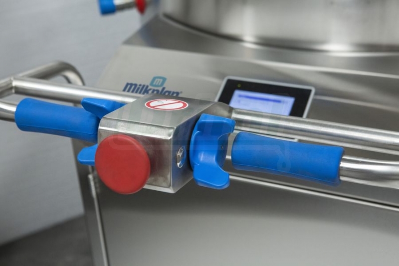 - Míchací motor s automatickým ovládáním otáček pro pomalé míchání během pasterizace mléka a rychlé míchání při rozmíchání prášku (sušeného mléka)