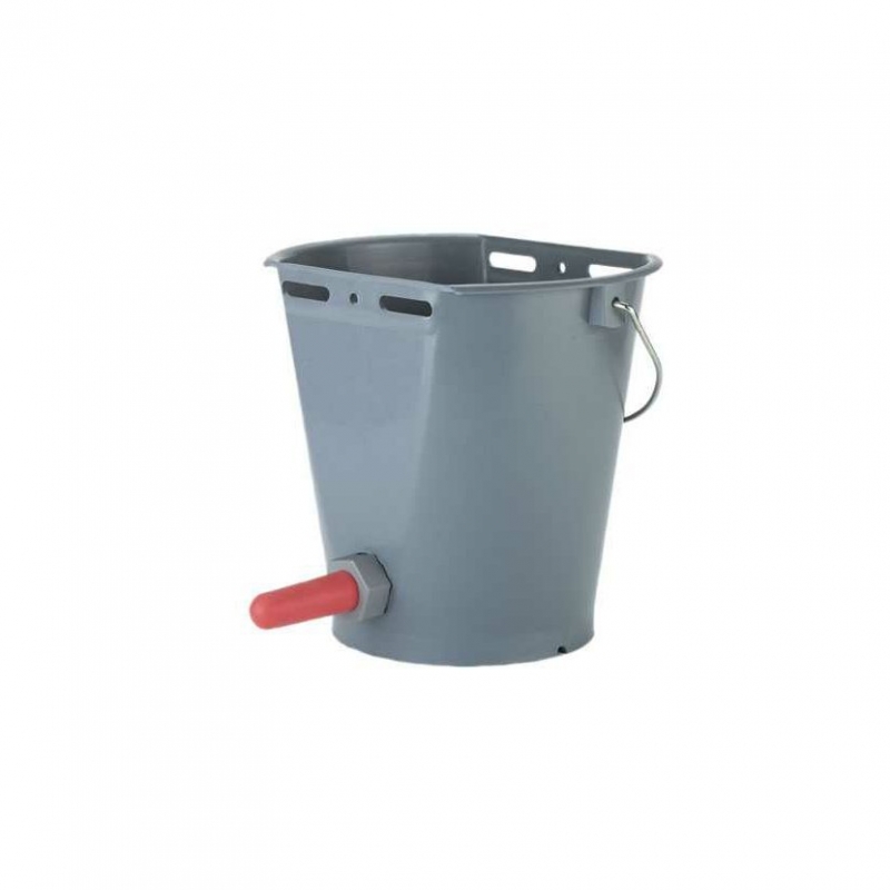 Kbelík napájecí plastový, šedý,zesílený, se stupnicí do 8 l, včetně zpět.ventilu a červeného dudlíku