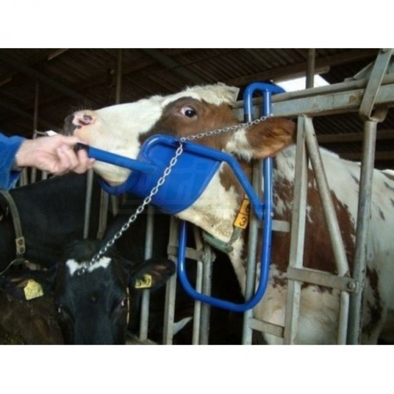 Fixační podpěra hlavy krávy umožňuje snadnou aplikaci medikamentů a ošetřování hlavy skotu bez nebezpečí zranění. Jednoduchý systém fixace hlavy.