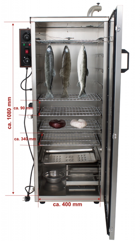 - Optimální kouření zajišťuje termostat a časový spínač řízený elektronickou jednotkou