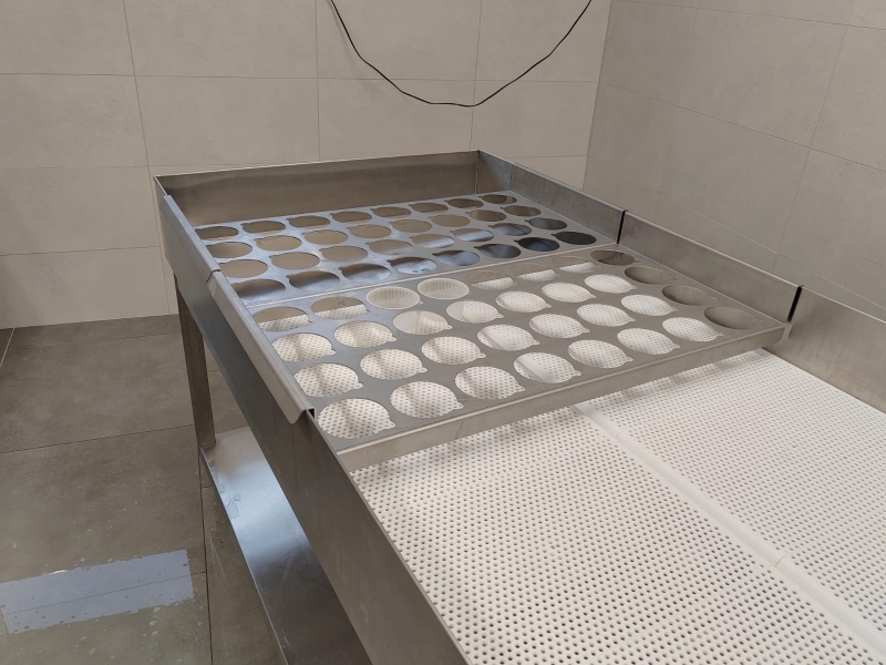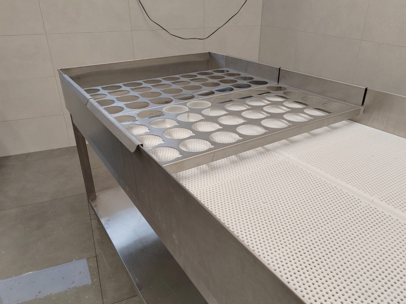 - Spádovaný stůl s odtokovým kanálkem pro odvod syrovátky