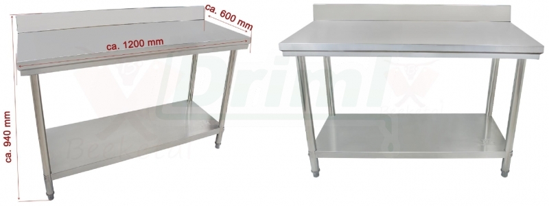 Dotazy a zkušenosti zákazníků se zbožím Pracovní skládací nerezový stůl s policí a zadní lištou 1200 x 600 x 955 mm