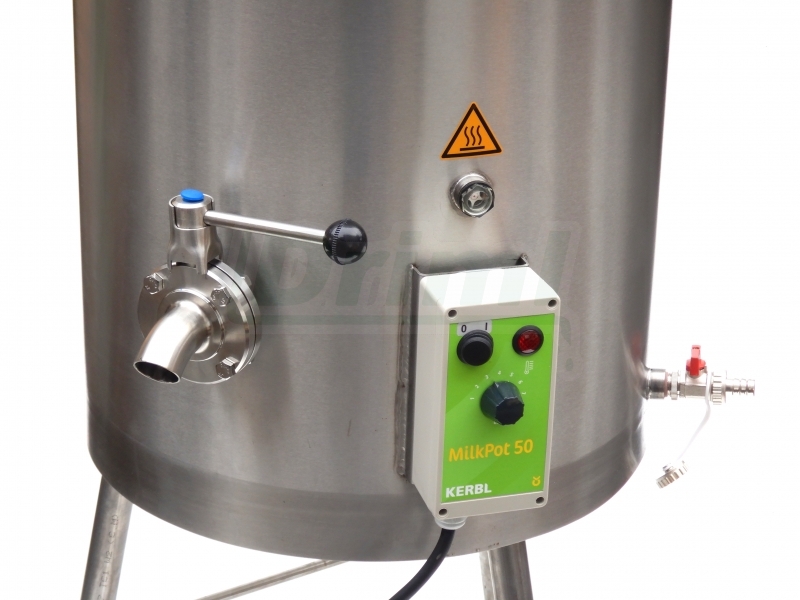 - Vzhledem k výkonu a teplotnímu gradientu cca 25°C/hod je vhodný pouze pro šetrnou pasteraci při 65°C s výdrží min. 30 minut. Po uplynutí této doby je nutné manuálně vypnout ohřev a otevřít ventil se studenou vodou. Čistá teplá voda odtéká při chlazení horním přepadem silikonovou hadicí buďto do připravené nádoby pro další využití, nebo později, již chladnější, do odpadu.