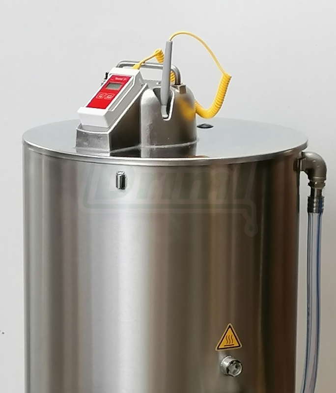 - Pozor! Teplotní čidlo termostatu snímá teplotu vody v duplikátoru (v meziprostoru dvojité nádoby), nikoliv teplotu mléka, která je vždy odlišná, proto je třeba pracovat dle teploměru který měří teplotu mléka!