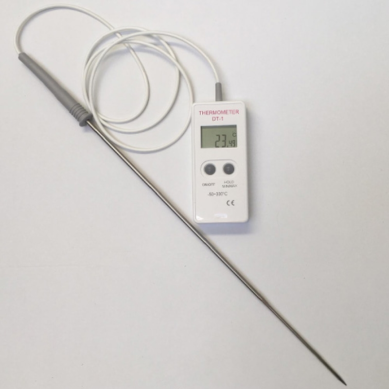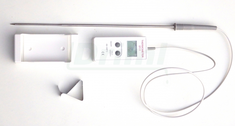 - Kalibrovaný digitální teploměr s 300 mm dlouhou nerezovou sondou