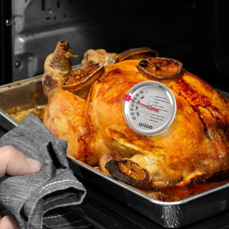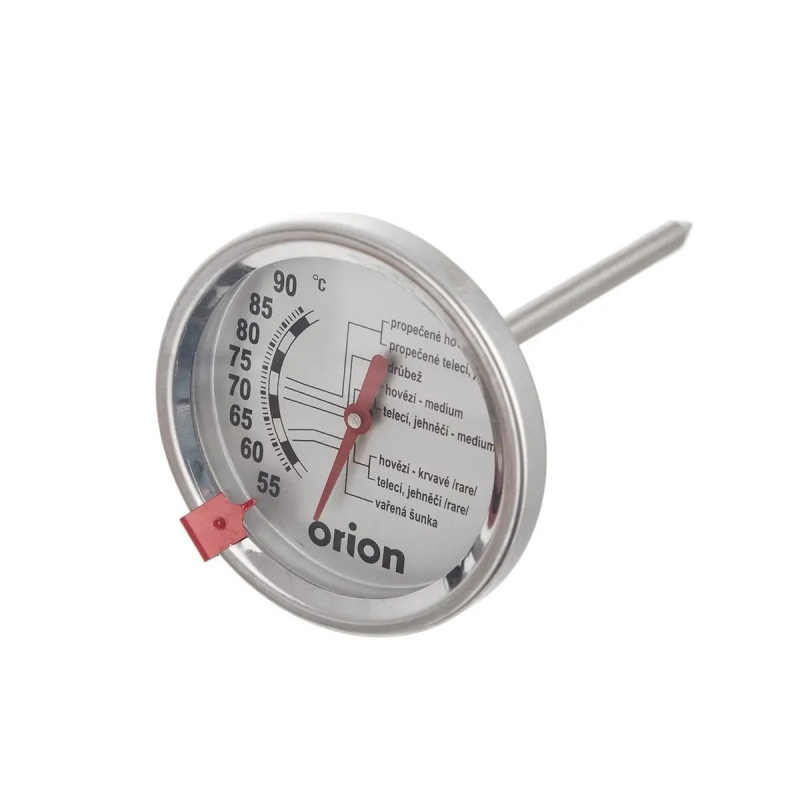 - Teploměr na měření teploty uvnitř masa - při jeho tepelné úpravě zaručí, že bude maso zdravě propečené a připravené při správné teplotě.